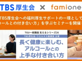 TBS厚生会がファミワンと協力し、TBSグループの従業員向けに「長く健康に楽しむ、アルコールとの上手な付き合い方」をテーマにしたオンラインセミナーを開催しました。飲酒に関する正しい知識と実践的なヒントが提供され、参加者からは前向きな声が聞かれました。