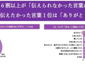 人生の「最後の別れ」について、30〜60代の男女500名を対象に行われた意識調査で、6割以上が「伝えられなかった言葉がある」と回答。最も伝えたかった言葉は「ありがとう」でした。突然の別れや「また会える」という思いから、後悔を抱える人の実態が明らかになっています。 -